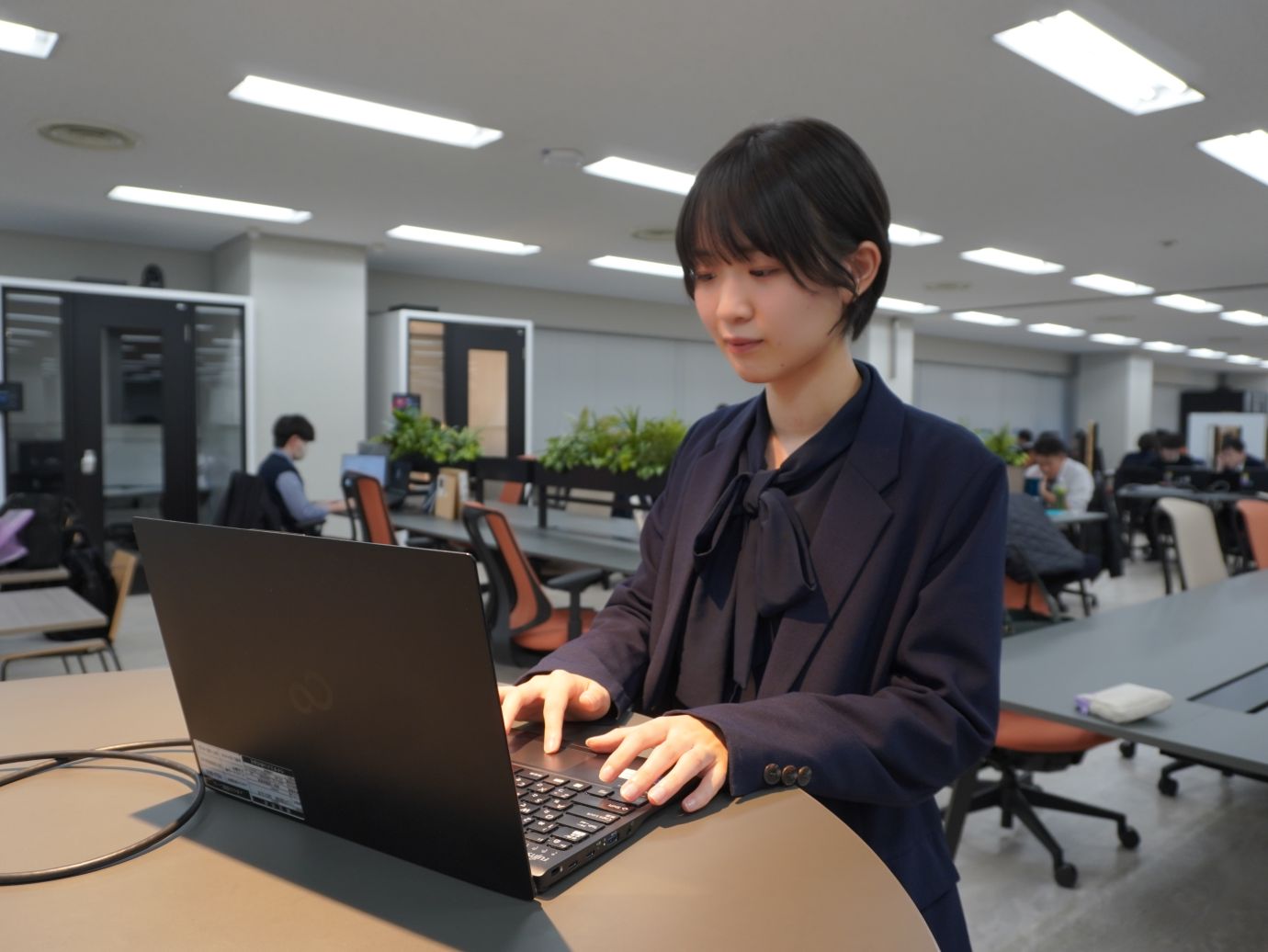 お客さまは民間企業や教育機関、地方自治体など幅広く、職種は4種類あります。その中でも働き方はさらに多様で、現場での作業が中心の場合もあれば、社内での作業が中心の場合もあります。もちろん希望がすべて通るわけではありませんが、選択肢が豊富な分、自分に合った形でお客さまにソリューションを提供できると感じます。